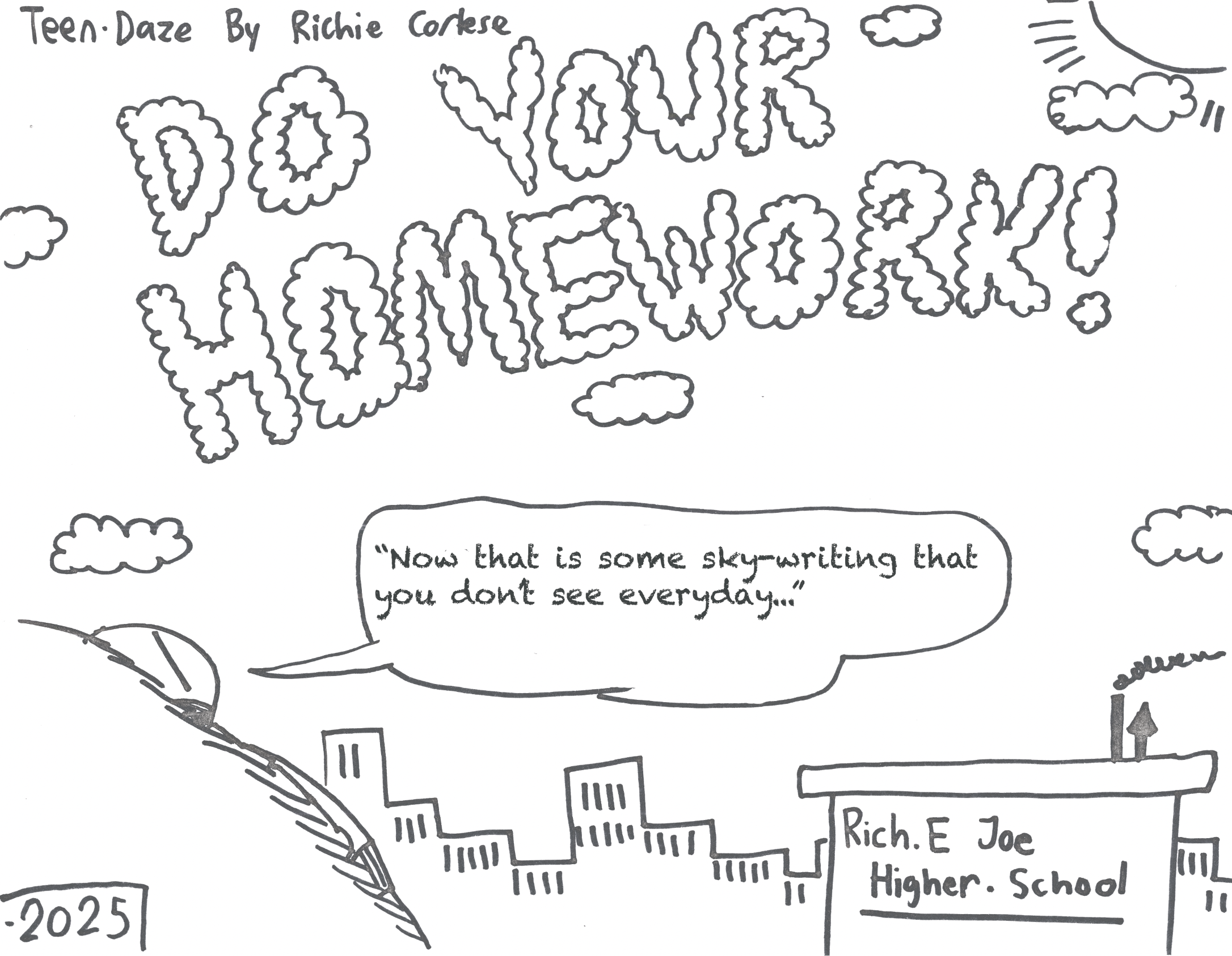 Homepage Comic Series: Teen Daze April Edition Nedlam April 8, 2025 Comics drawn and submitted by Richard “Richie” Cortese. About the Author Nedlam Contributor View All Posts Post navigation Previous: Department of Education’s Possible Elimation Sparks Concern among TeachersNext: The Scoop Re-Opens: Sweet Treats Return to Malden Related Stories Homepage Muslim Student Association Club: Creating Community and Sharing Faith Adam El Fatihi December 11, 2025 0 Homepage Sports Ready, Set, Snow! Winter Cheer Tryouts Are Here Joana Vassao December 11, 2025 0 Homepage MHS Boys’ Basketball Team Returns to the Court with New Passion Antoine Alce December 11, 2025 0