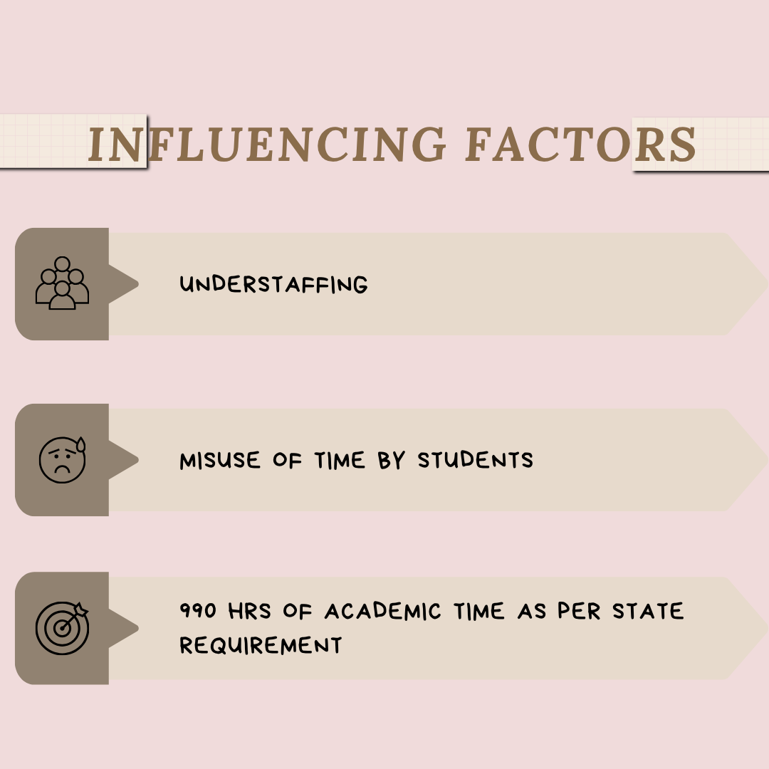 While the practice sounds efficient in concept, it soon derailed due to a few significant factors: understaffing, students not meeting the required academic time dictated by the state, and the misuse of the period.