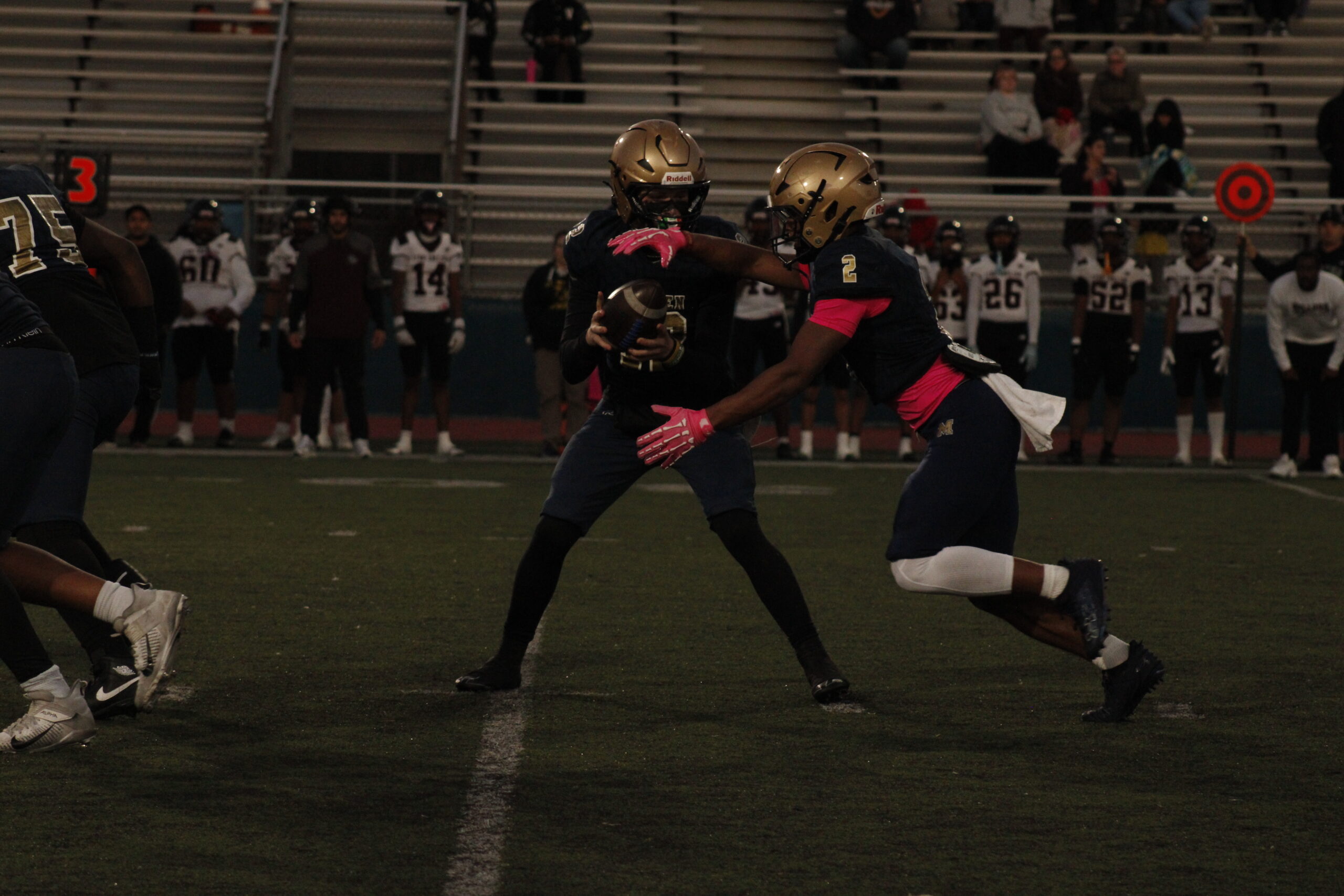 After an unsuccessful two-point, Malden tried an onside kick of their own that was recovered successfully to put the offense back on the field at the 49-yard line. Malden looked to waste no time on this drive, opening with a five-yard hand-off for McGuffie, followed by the first pass attempt for Malden in this game, with a 22-yard corner route reception by senior wide receiver, cornerback, and Captain Manny Perez, who is also a reporter for The Blue and Gold. After that, Malden had first and goal at the nine, where they handed the ball off to McGuffie for a carry of six, before punching it in the next play for another Malden touchdown. After a successful two-point conversion, the score was 16-14 with 4:45 minutes left in the half.