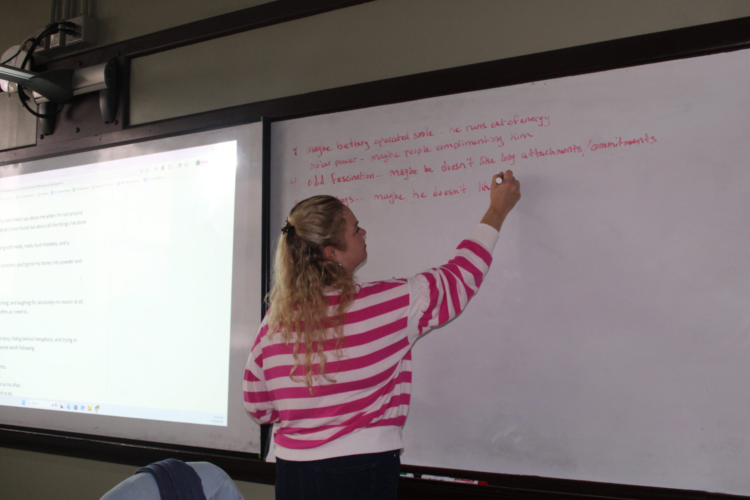 “It’s been great to have someone else to work with in the room. She helps her students. Even the most difficult students seem to roll over for her when she’s asking them to do something,” English teacher Dr. Charles Redmond explained.