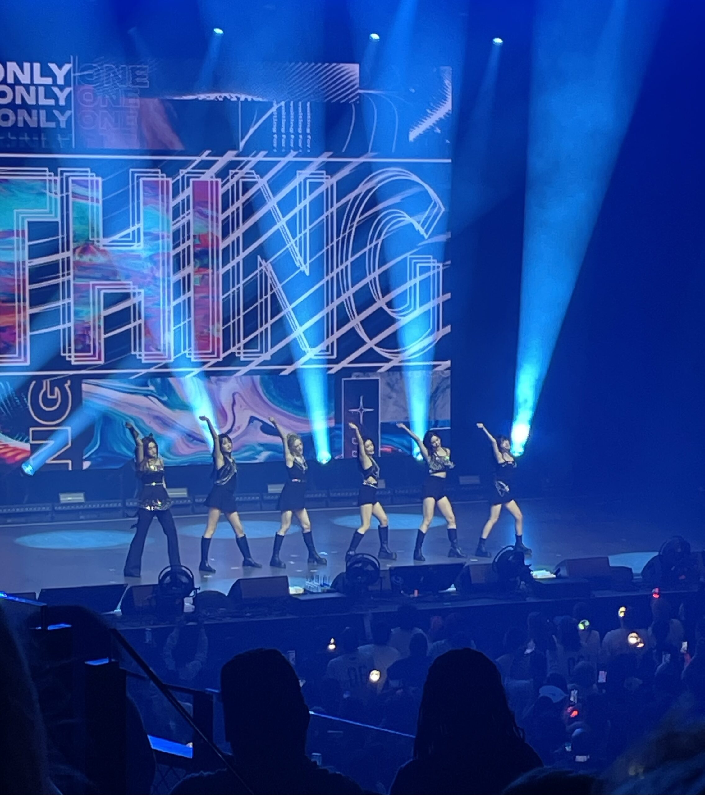 While we were waiting, the speakers quietly played instrumental versions of STAYC’s songs. As soon as the clock reached 8:00 p.m., the lights dimmed, the speakers got louder, and the stage lights shone brighter, which made my heartbeat race. The big screen presented a video introduction of the tour and the members. As fans cheered loudly, the stage lifted, revealing the STAYC members, ready to perform for Boston.