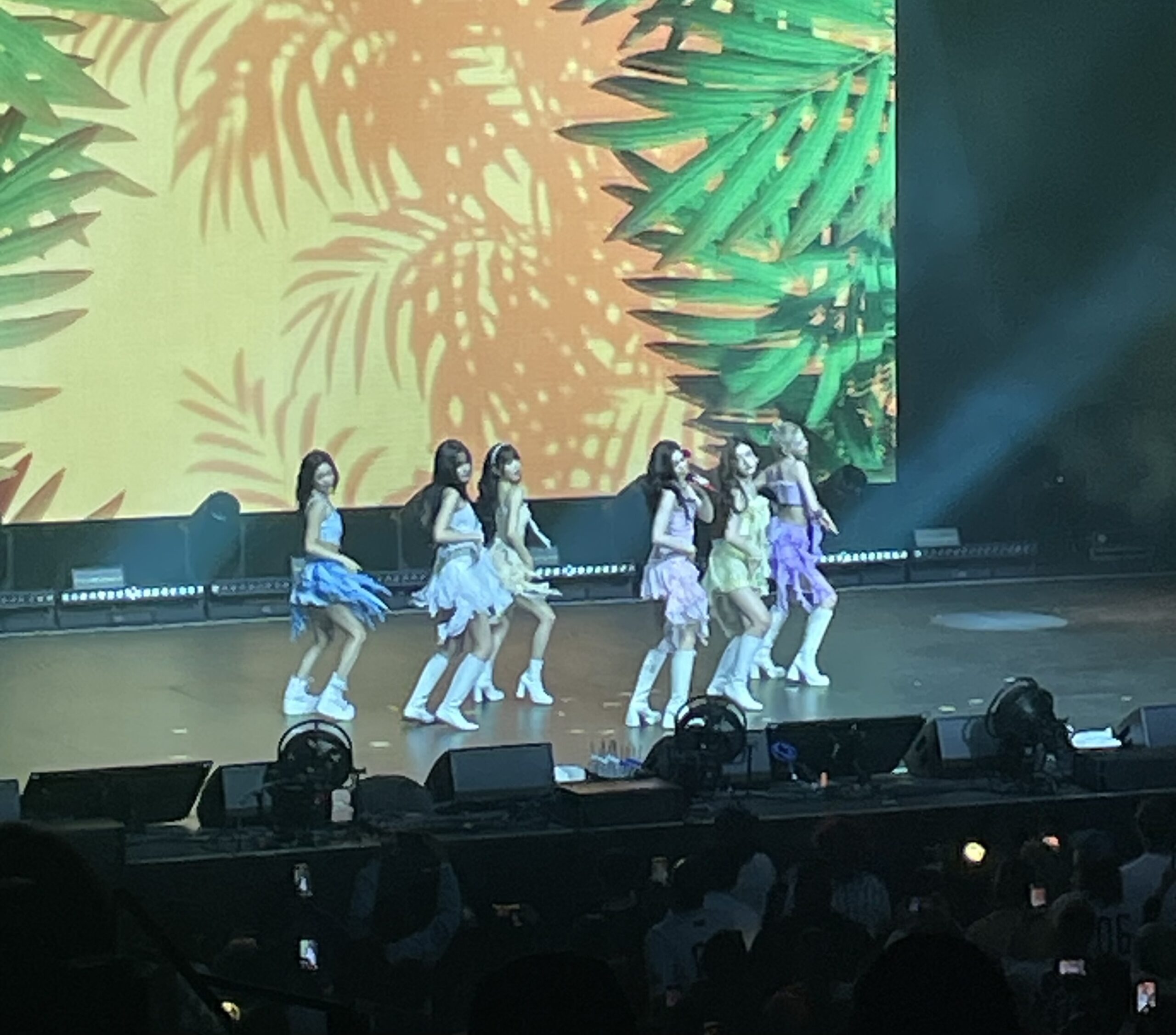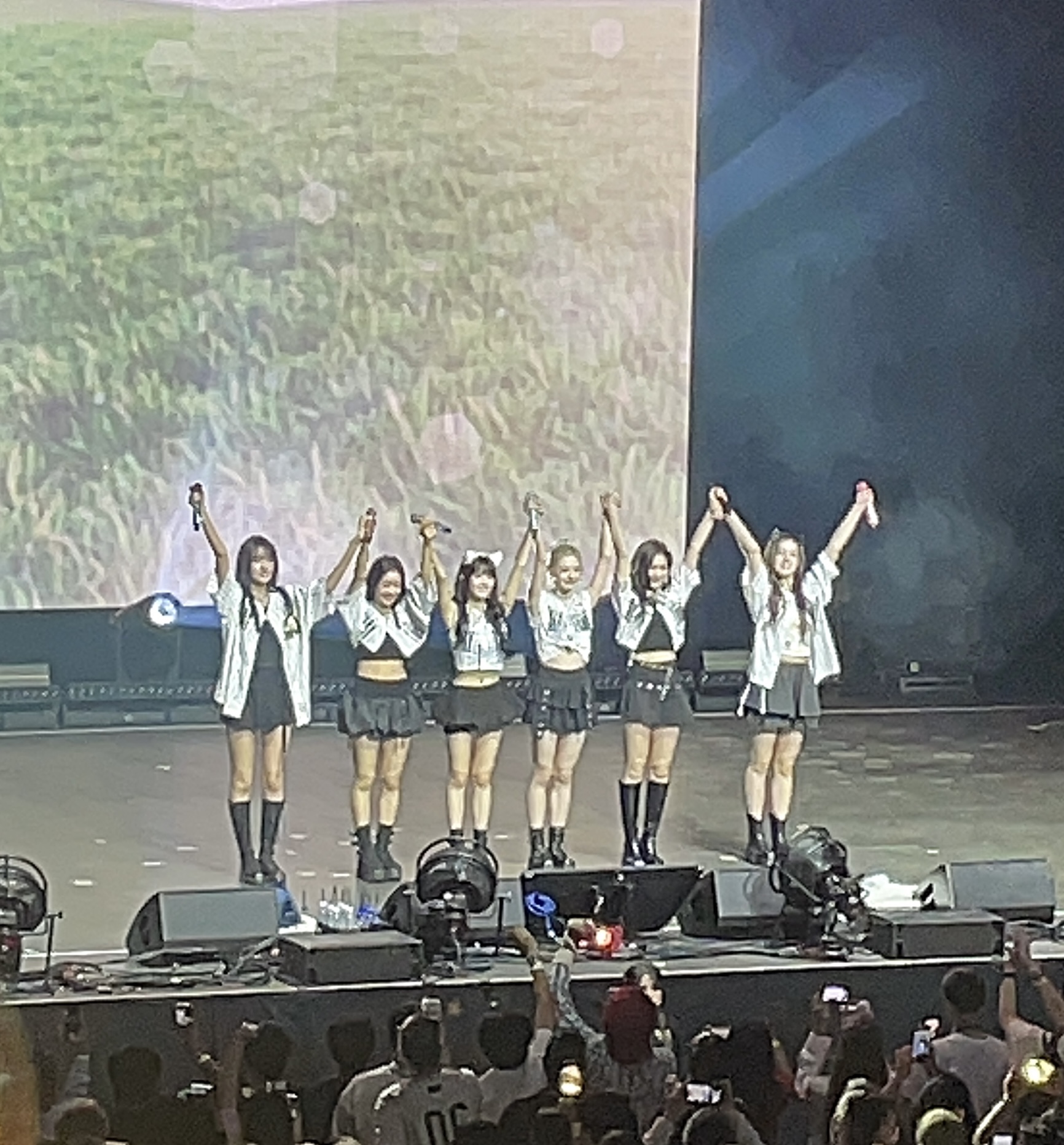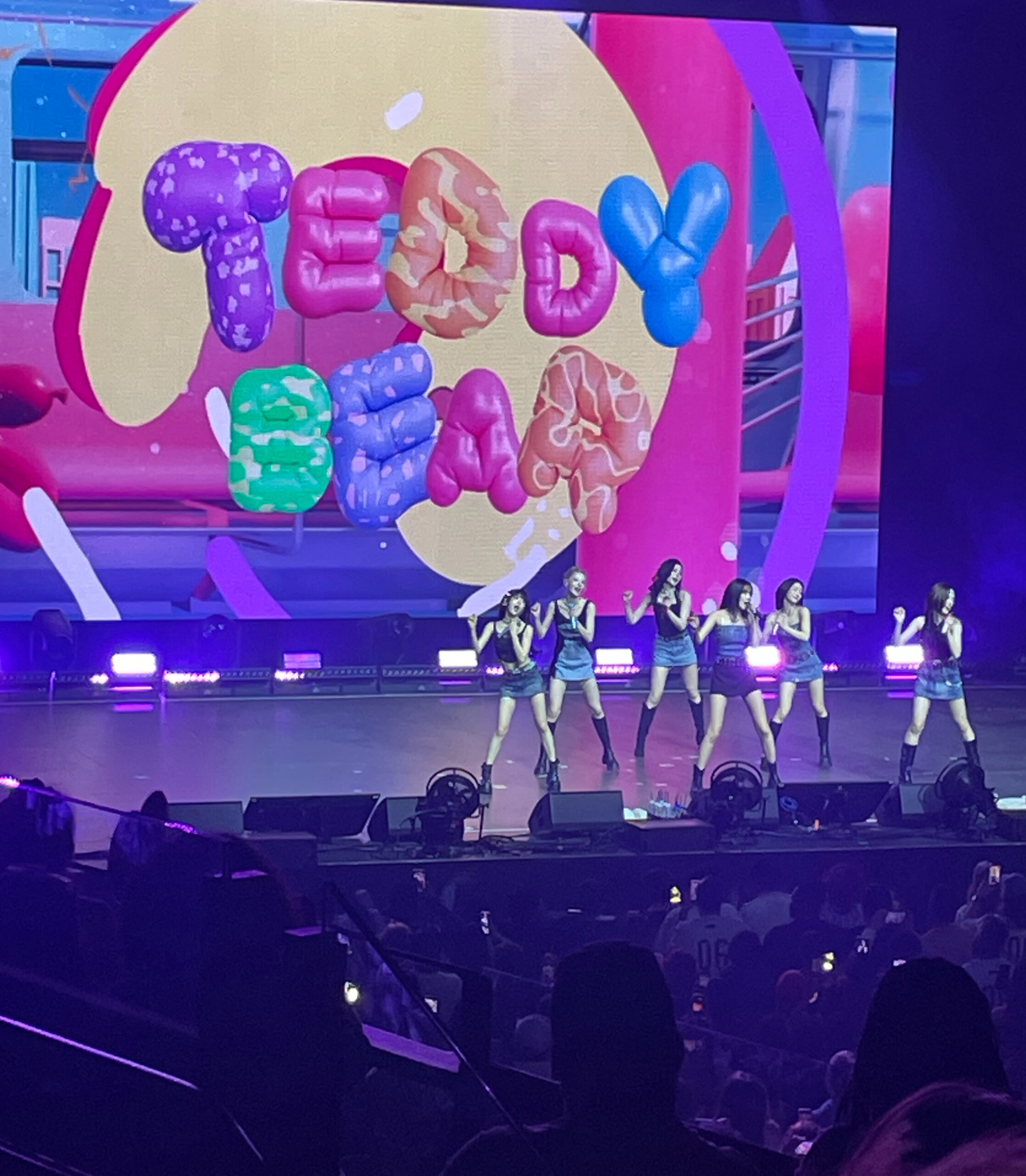 The quick video then ended, with the room being lit up and the members starting to walk around the venue, specifically the floor section, waving, high-fiving, and taking pictures with the fans. While walking around, the song “Gummy Bear” played. Once they walked back up to the stage, the lights dimmed for the last time.