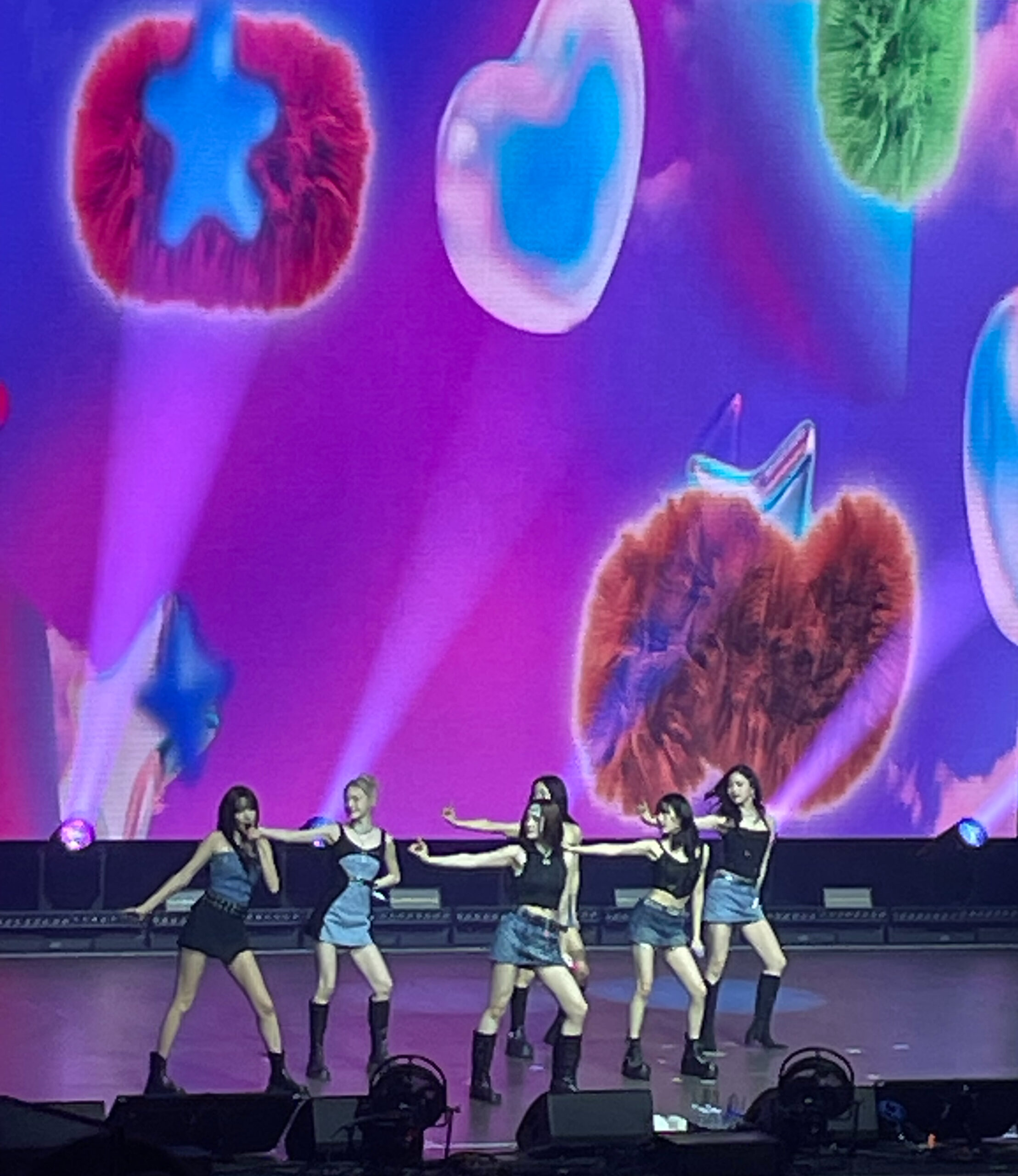Before their next set of songs played, a video played on the big screen, this video hinted at what songs STAYC would perform next. In this set, they performed in sub-units: the first group had members Sieun, Seeun, and J, who sang “Find”, a soft, dreamy song accompanied by a fun and fast beat. Next sub-unit was Sumin and Yoon, singing a powerful yet emotional song titled “Fakin’”. The last member, Isa, had a sensual R&B-like solo song titled “Roses”.The last song of this section was “YOUNG LUV”, my favorite song from their entire discography. This song, although emotional and soft, showed off their strong vocals, hitting many consistent high notes. They also presented an outfit change, showing off colorful ruffly dresses.