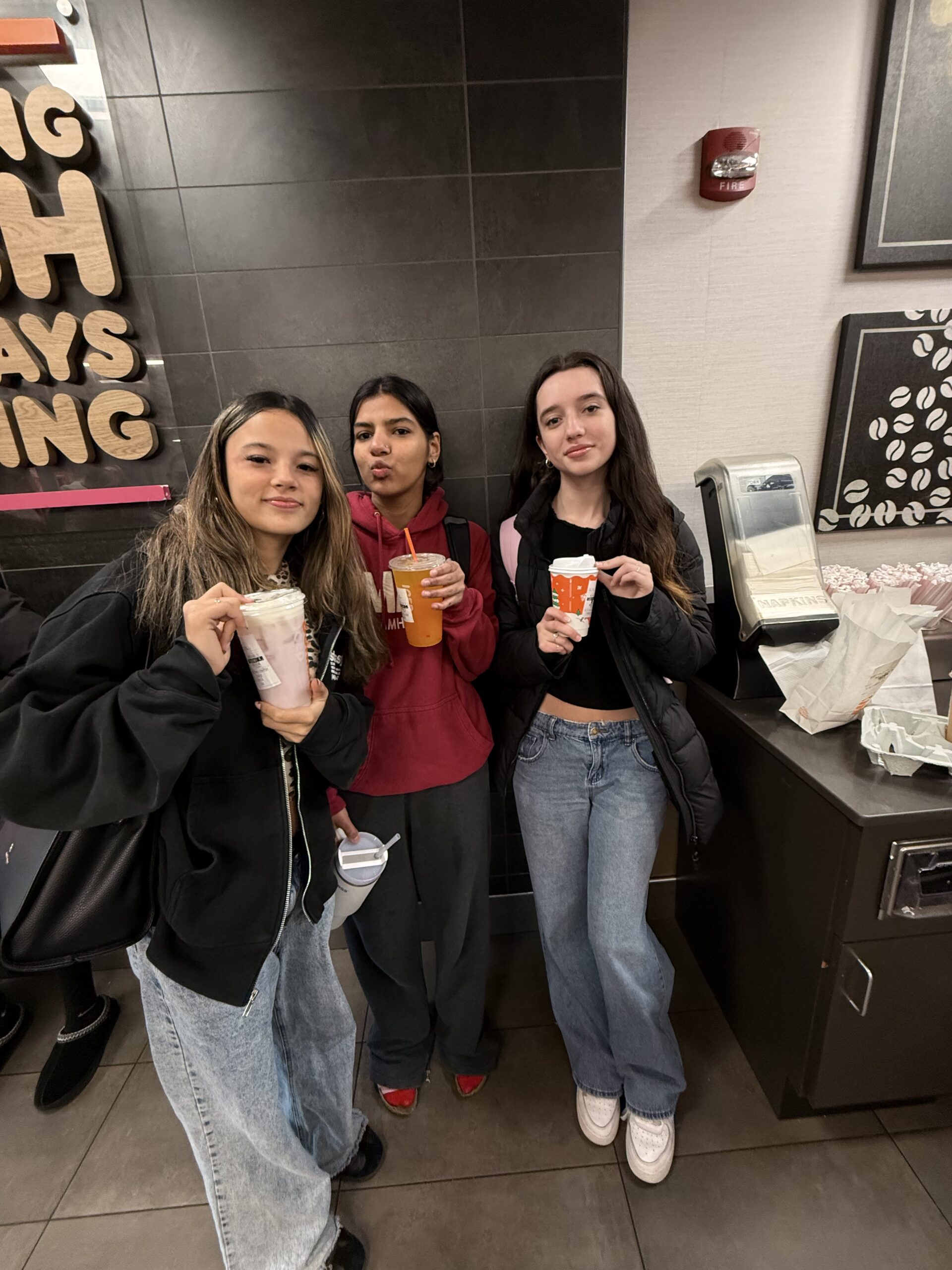 From left to right: Rashmi KC, Avani Chhetri, and Gabriella Lemus at Dunkin Donuts. DYLAN CHEN