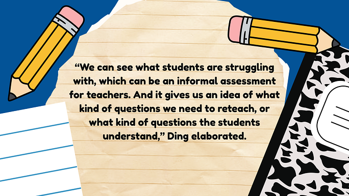 “We can see what students are struggling with, which can be an informal assessment for teachers. And it gives us an idea of what kind of questions we need to reteach, or what kind of questions the students understand,” Ding elaborated.