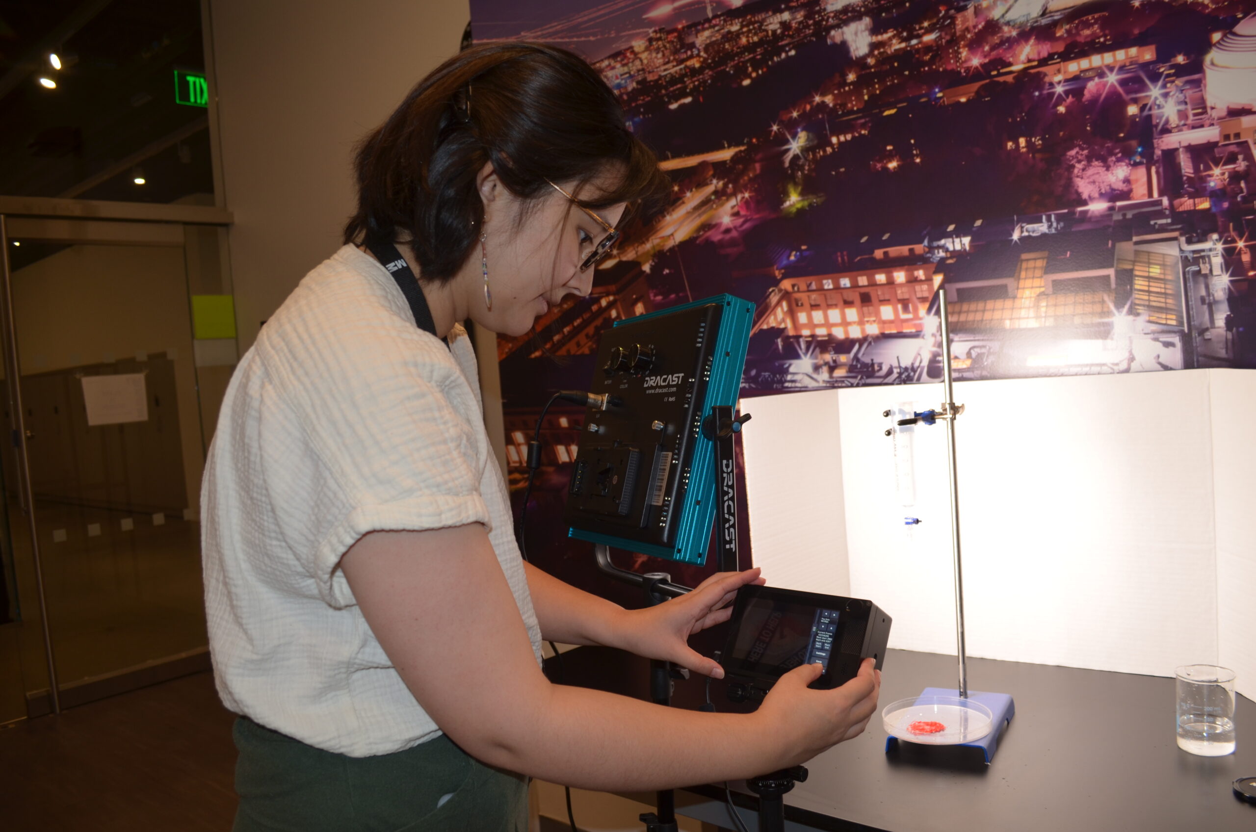Once we finished creating our designs, our instructor, and also the Manager of Science Education, Dora Bever, used a high-speed camera to record water interacting with the 3D structures, capturing each droplet as it was either absorbed or adhered to the plant’s surfaces. Watching the process unfold on video brought the experiment to life in a way that reading about it in class never could.