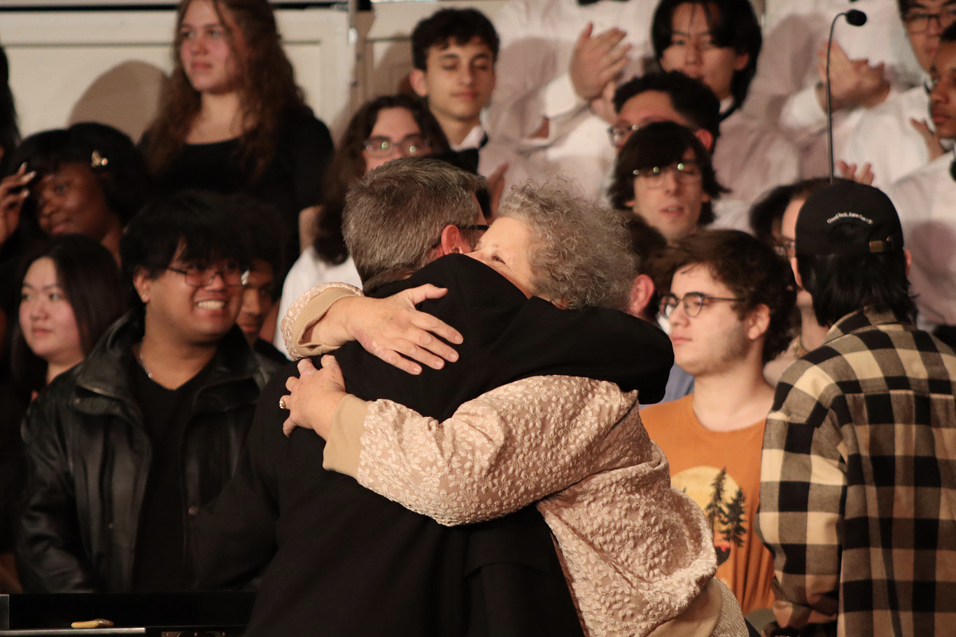 After their performance of “Borukh Ate, Zingt Der Tate,” and “I Saw Three Ships,” the Concert Choir finished the night with their traditional performance of “O, Holy Night” in which alumni from past years returned to the stage to sing and be directed by Cole one more time.