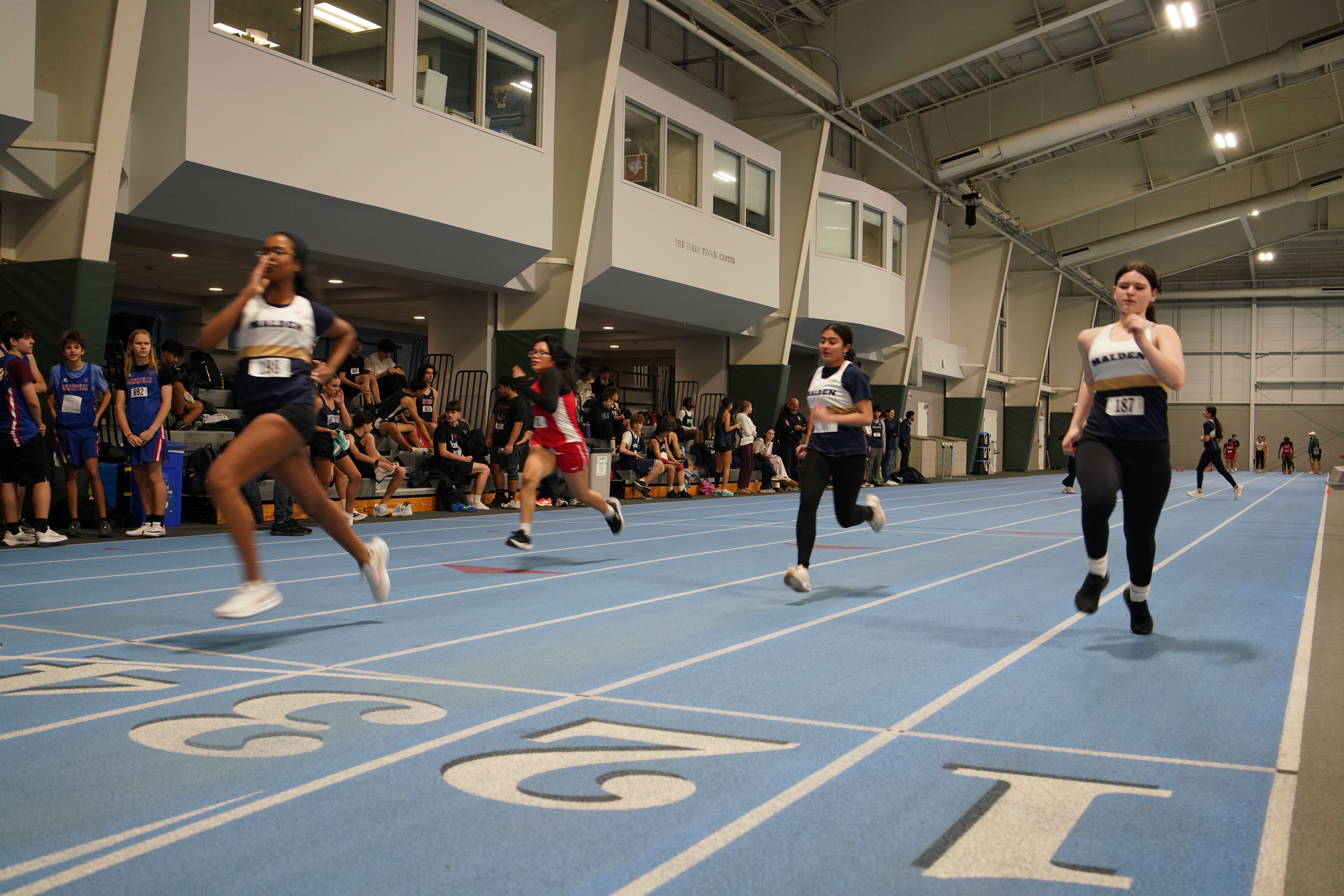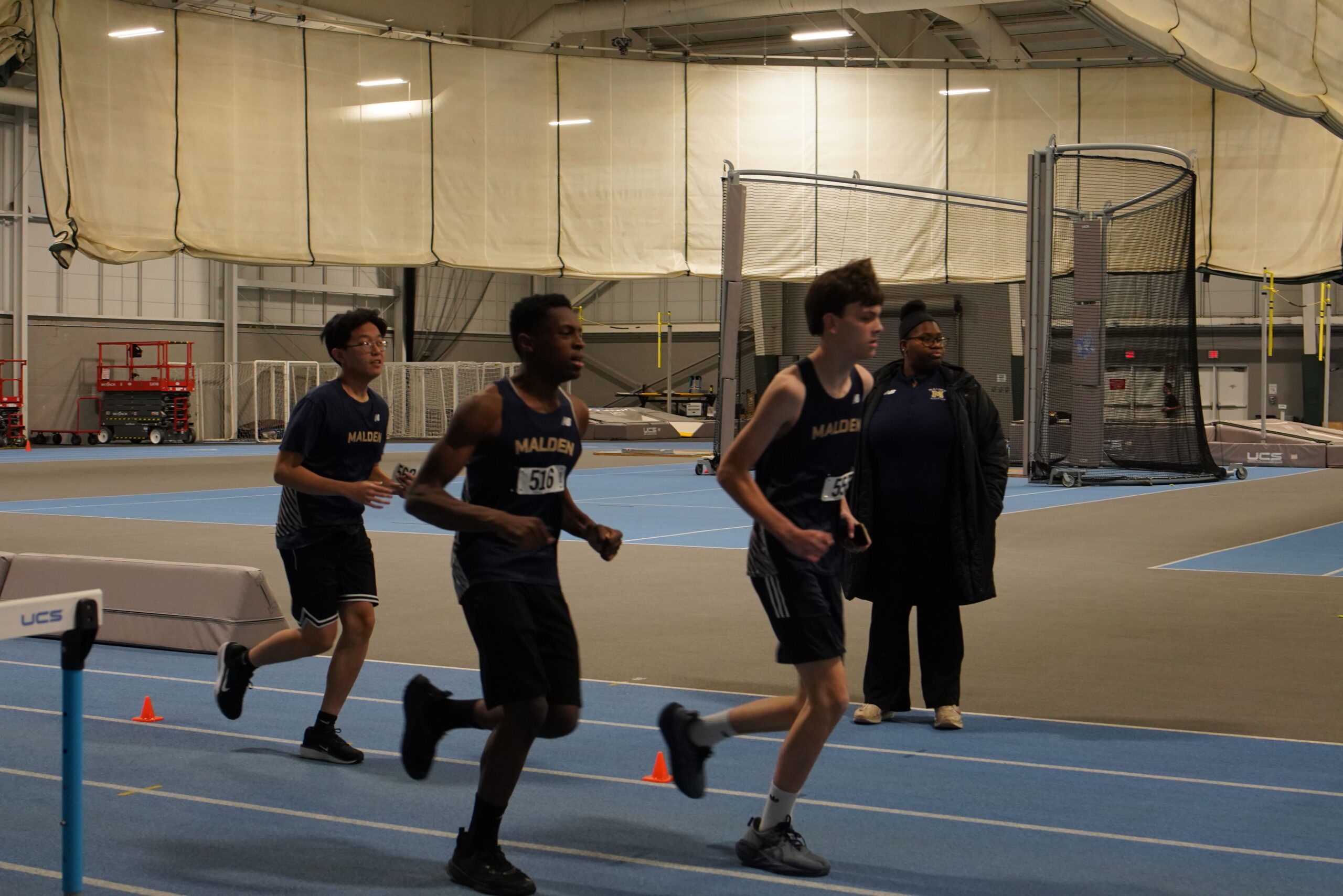 The first event to set off the meet was the Boys’ 55-meter dash. There were many participants, but a few stood out, placing first, second, and even third. Freshman Francis Chang placed third in his heat but first for Malden, reaching a time of 7.3 seconds.