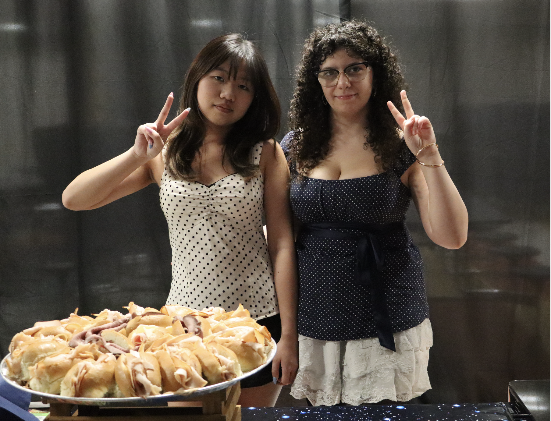 The food station was placed near the back, where a variety of items lined the table, including vegetarian-friendly options. Tuna, ham, and roast beef rolls, spinach and broccoli calzones, chicken tenders, a veggie tray, fresh fruit, and an assortment of condiments were available as the main dishes. After a while, brownies, cupcakes, and cookies were dished for dessert.