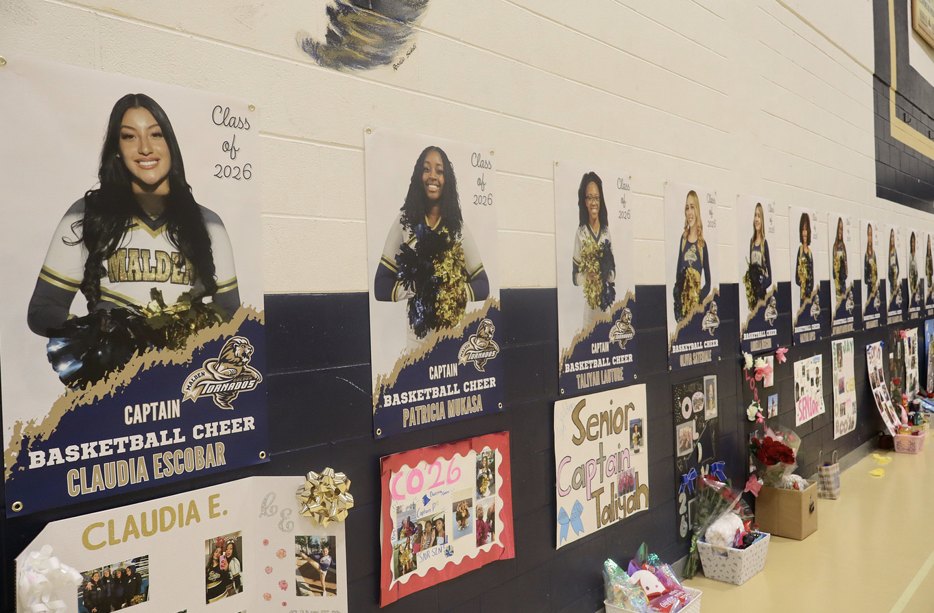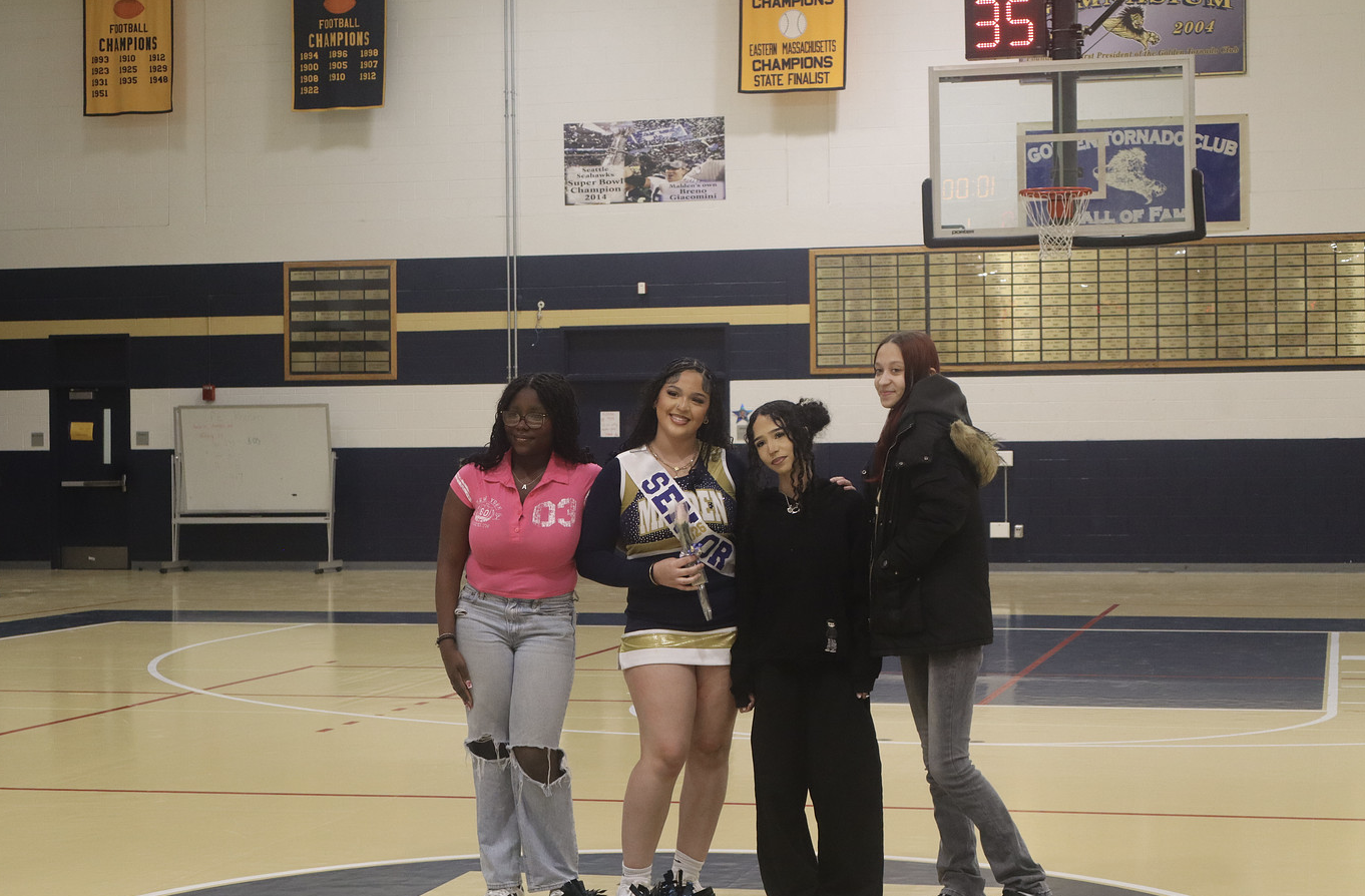 On February 5th, 2026, Malden’s cheer team’s senior night was filled with flowers, gifts, memories, and applause that echoed through the gym as they cheered on the Boys’ Basketball team one last time, starting a new chapter in their lives as the season ended.