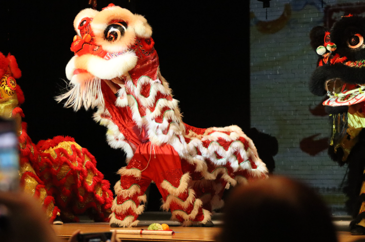 The highlight of the event was the festival performances. The program kicked off with an energetic lion dance, immediately captivating the audience. Performed by two dancers inside a single lion suit, the pair skillfully mimicked a lion’s movement to a loud beat of gongs, cymbals, and drums. Traditionally, the lion dance is meant to ward off evil spirits while bringing in good luck, prosperity, and joy.