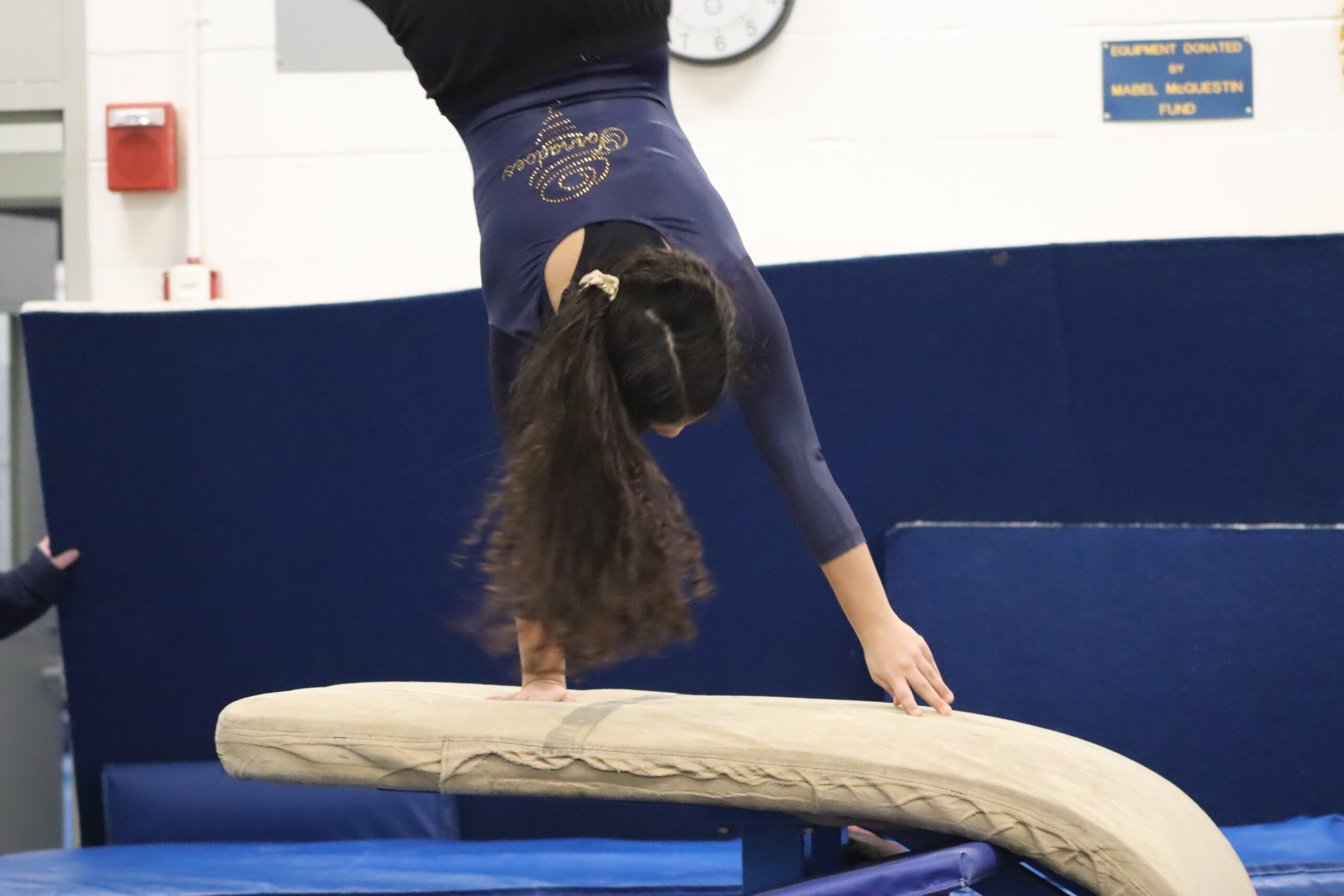 Up next was the beam, where those who wanted to display agility and balance could do so. Gymnasts carefully mounted the narrow beam, stabilized themselves, performed their chosen skill, and then backflipped or jumped off the equipment to conclude their routine.
