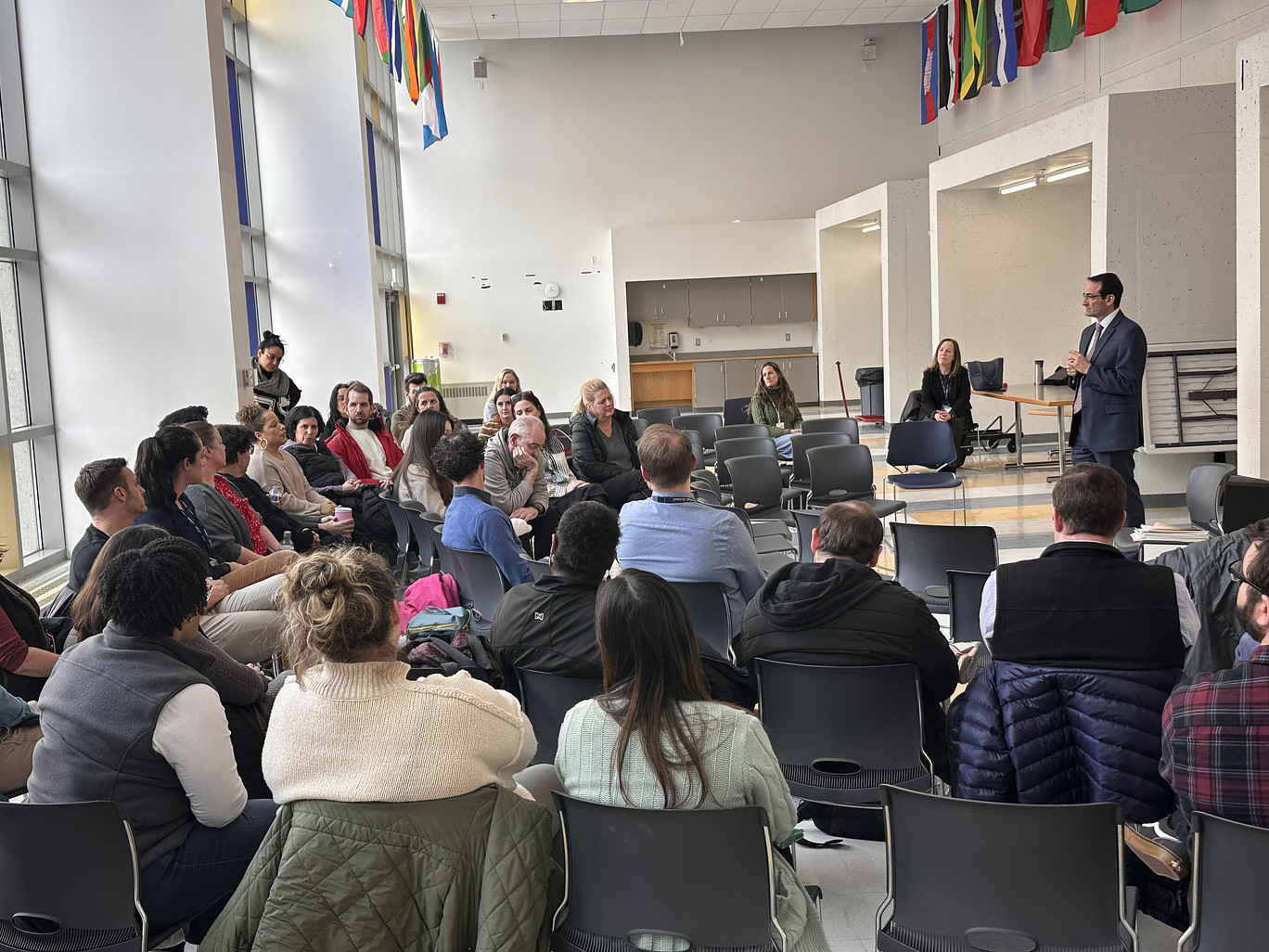 Michael Sabin meeting with the teachers of Malden High School. Photo submitted by Timothy Sippel.