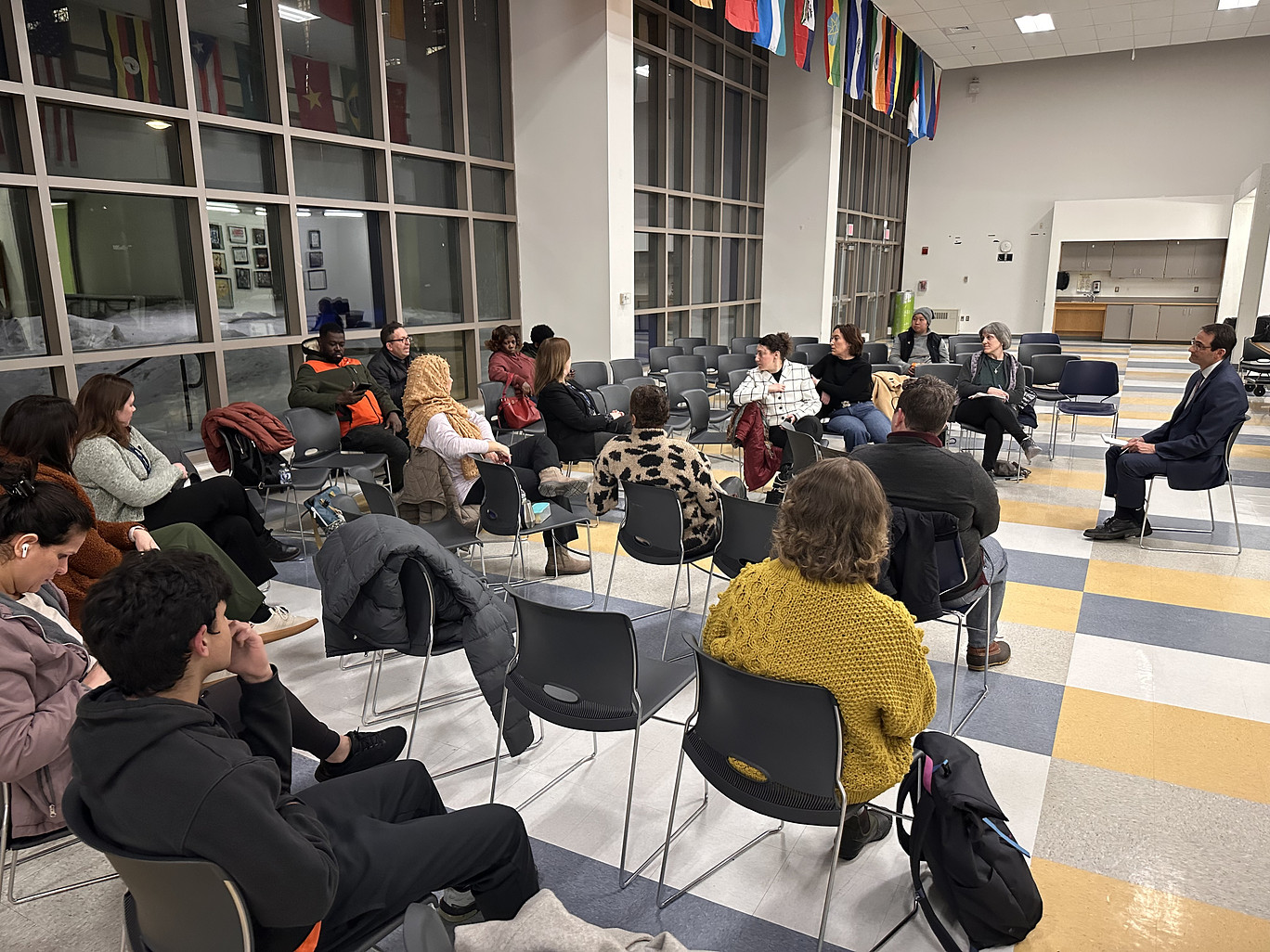 Michael Sabin meeting with the parents and caregivers of Malden. Photo submitted by Timothy Sippel.