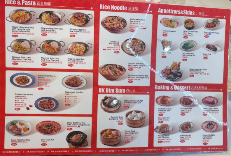 Sing Choi Kee is a cha chaan teng, or a  “tea restaurant” but also refers to a Hong Kong style cafe; a common cafe style in many places in China where the atmosphere and decorations are a retro or an eclectic theme, taking customers back into the past. Not only are the decorations part of the style but also the food, which has European but mainly British influence due to the colonization of China in the past. Cha chaan tengs were developed around the 1950s-60s as an affordable, accessible version of British-style cafes for local residents.