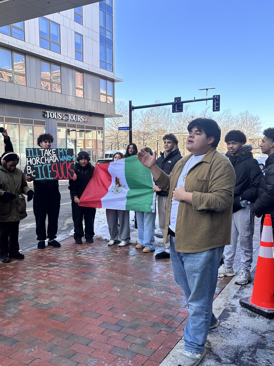 During third period extension, students gathered in front of the high school with homemade protest signs to march together to Malden City Hall. Upon arrival, junior Brayan Sorto addressed the crowd: “We speak for all those who have been detained, for all the little children and for all of the families that have been separated and are afraid to say something.”