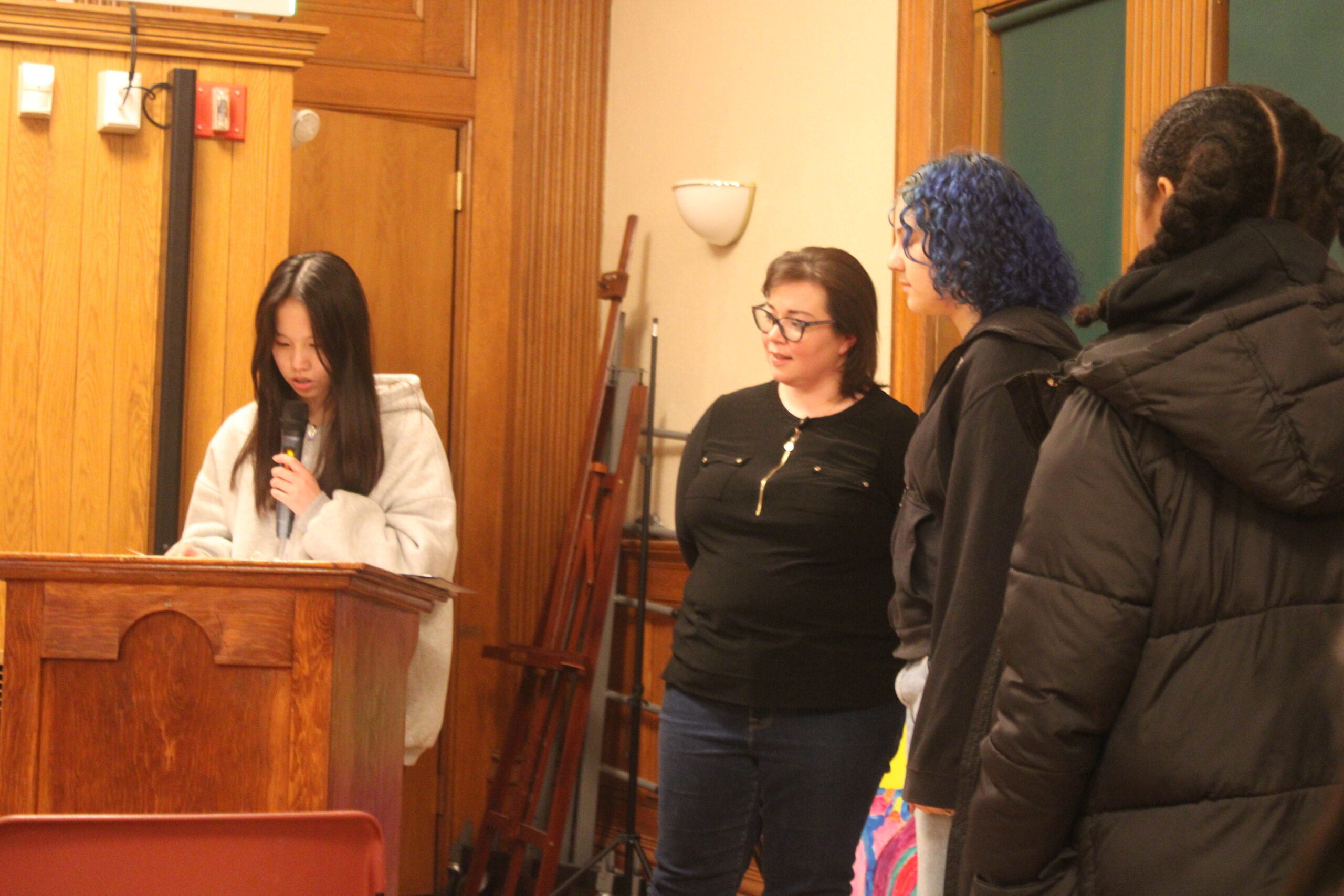 Teacher Thanking Everyone who came to the Mural Reception- AFIF ALAKOUM